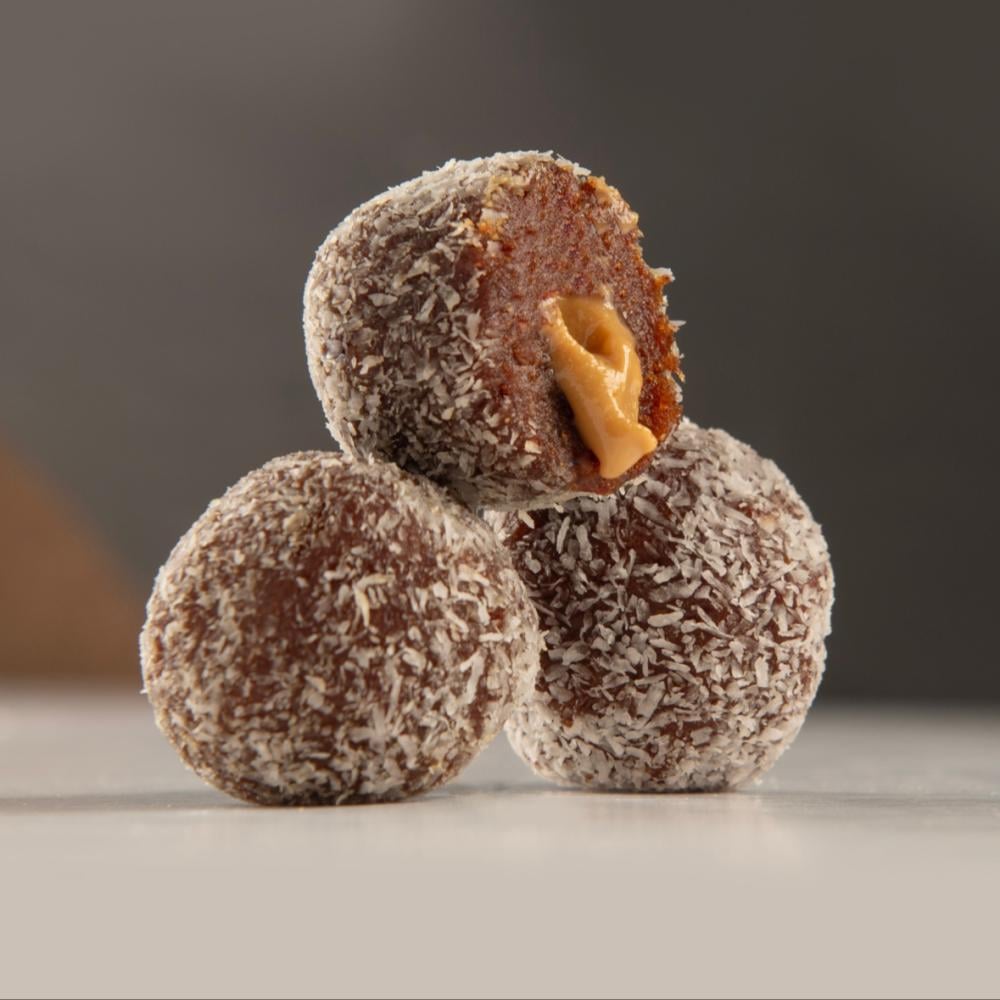 عجينة تمر محشية طحينة سمسم مزينة بجوز الهند