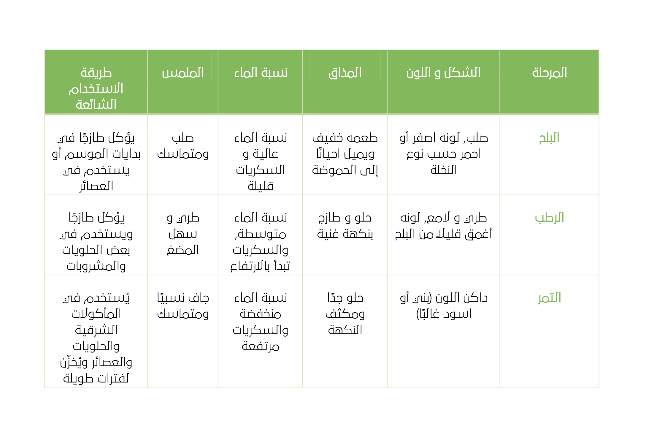 قد نرى البلح والرطب والتمر على موائدنا ونتعامل معها كأنها فواكه مختلفة، لكن الحقيقة أن هذه المراحل الثلاث ما هي إلا رحلة تطوّر طبيعية لثمرة واحدة، ثمرة نخيل التمر، وفي كل مرحلة، يتغير شكلها وطعمها وملمسها، لتقدّم لنا تجربة جديدة من النكهة واللذة التي لا تتكرر، إليك الآن الفرق بينها بشكل بسيط وواضح:
