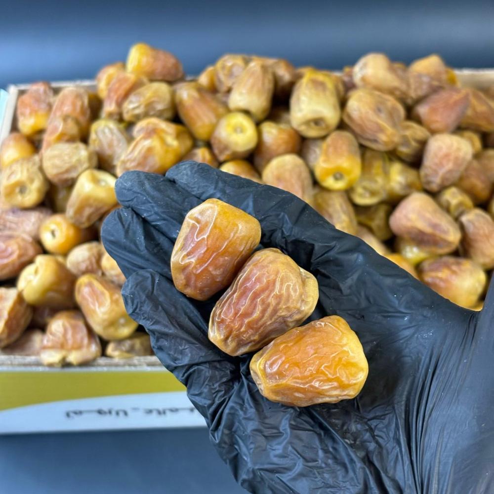 تمر فاخر بلون ذهبي جذاب، حبة متوسطة ولينة بطعم أصيل يذوب في الفم.